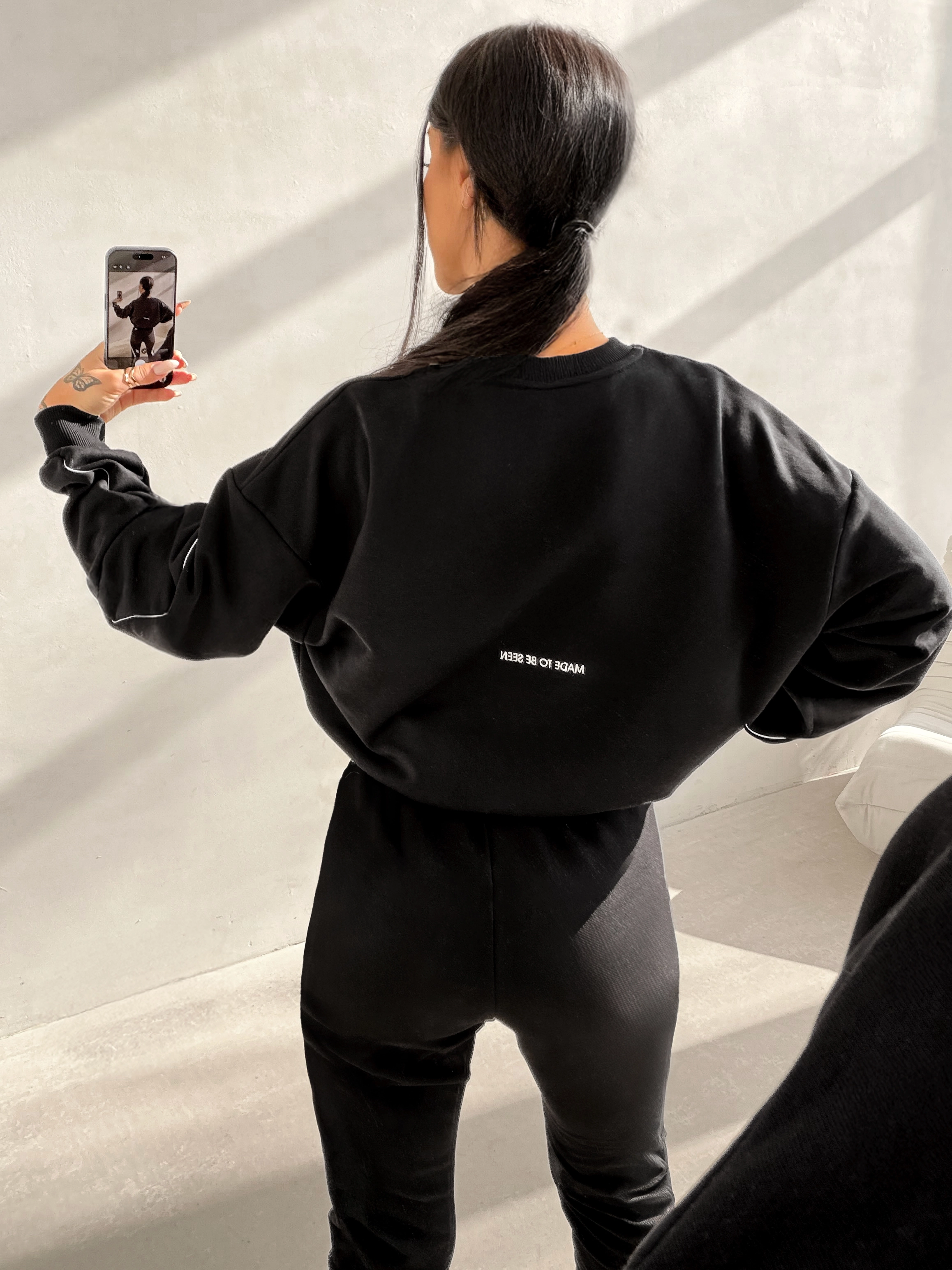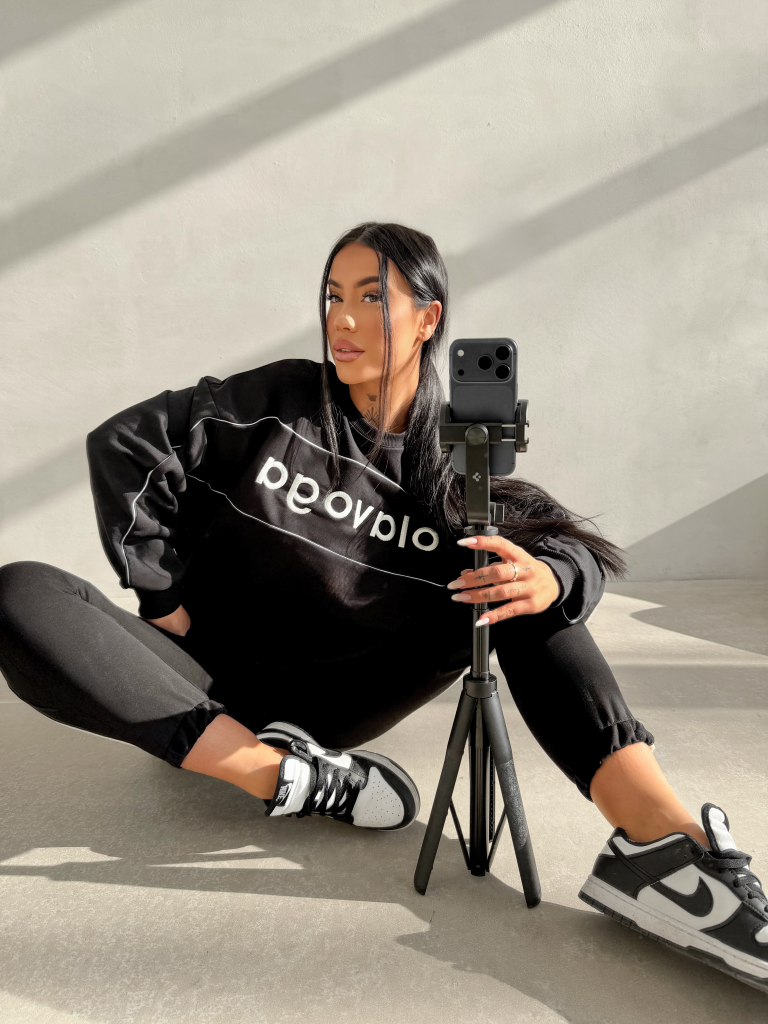 modelu. Na tyle subtelne logo brandu. Dół zakończony elastycznym ściągaczem. Ważne aspekty: luźny,