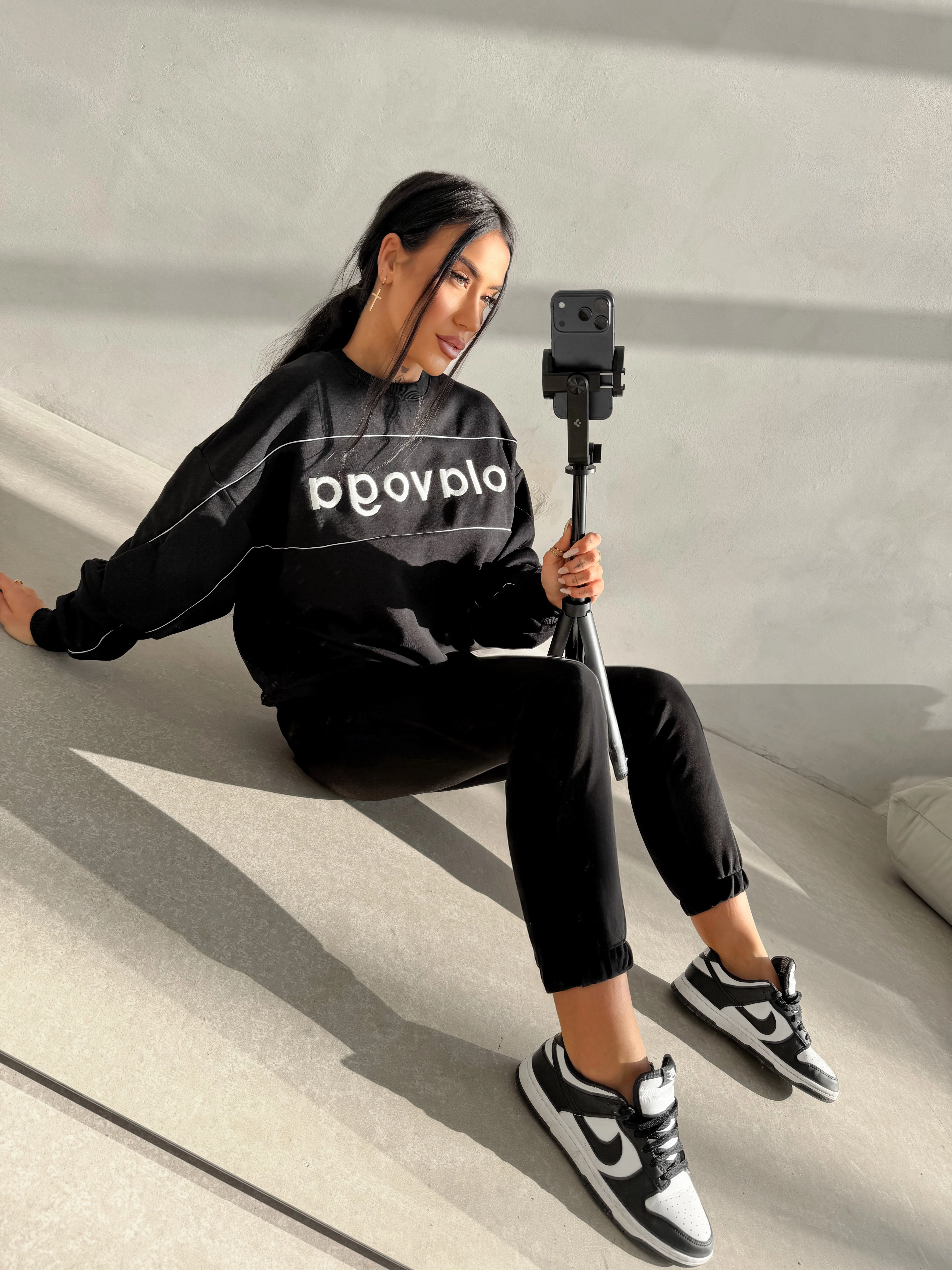 Oversize’owa bluza z okrągłym dekoltem wykonana z miękkiej, komfortowej dzianiny. Z przodu duże logo