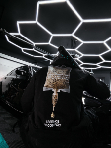 wysokogatunkowa tkanina - efektowna grafika na plecach wykonana metodą sitodruku -