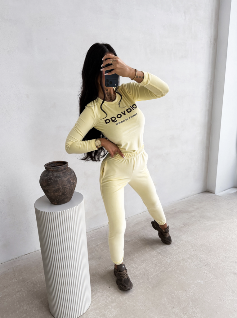 Komplet damski OLAVOGA SELIRA to stylowa propozycja dla kobiet, które cenią modny design oraz wygodę. Zestaw składa się z dopasowanej bluzy oraz komfortowych spodni. Dzięki temu tworzy spójną stylizację inspirowaną modą streetwear.