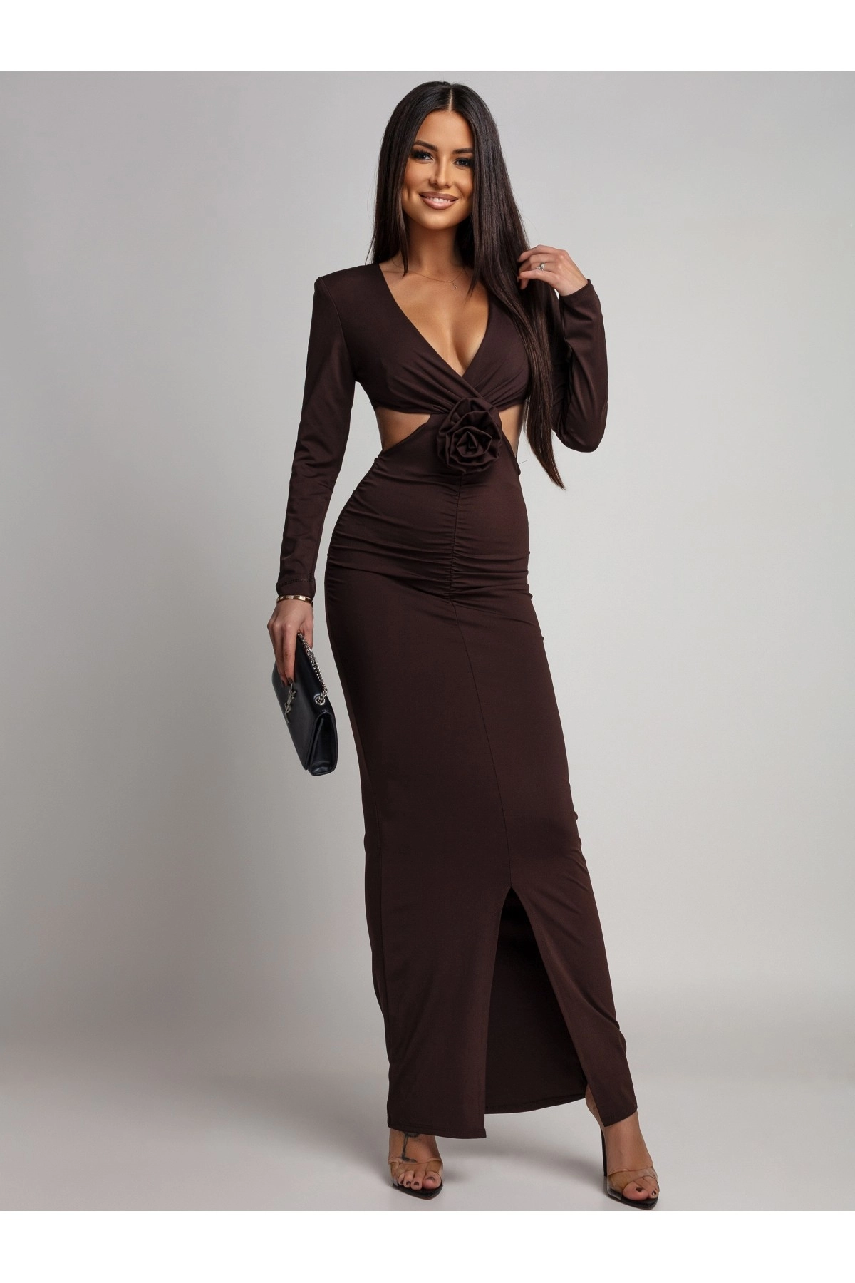 Sukienka z odpinanym kwiatem czekoladowa
